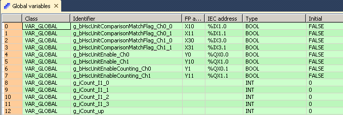 Dans la liste des variables globales, vous définissez des variables qui sont accessibles par tous les POU dans le projet.