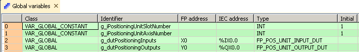 Dans la liste des variables globales, vous définissez des variables qui sont accessibles par tous les POU dans le projet.