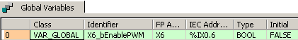 Dans la liste des variables globales, vous définissez des variables qui sont accessibles par tous les POU dans le projet.