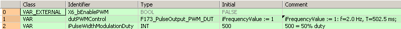 dutPWMControl: F173_PulseOutput_PWM_DUT:=iFrequencyValue := 1;