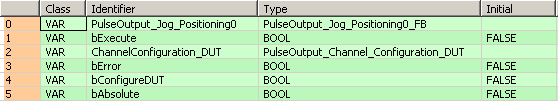 B(B_FB,PulseOutput_Jog_Positioning0_FB!,PulseOutput_Jog_Positioning0,12,1,28,11,,?BbExecute?BbAbsolute?BdiInitialAndFinalSpeed?BdiTargetSpeed?BdiAccelerationTime?BdiDecelerationTime?BdiTargetValue?BdutChannelConfiguration?AbError);