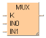 La fonction Multiplexer sélectionne une variable d’entrée et écrit sa valeur dans la variable de sortie. La 1ère variable d’entrée détermine quelle variable d’entrée (IN1or IN2...) doit être écrite dans la variable de sortie. La fonction MUX peut être configurée pour n’importe quel nombre d’entrées souhaité.