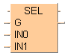 La première variable d’entrée (type de données BOOL) de SEL détermine quelle variable d’entrée doit être écrite dans la variable de sortie. Si la valeur booléenne = 0 (FALSE), la variable d’entrée IN0 sera écrite dans la variable de sortie, sinon ce sera IN1.