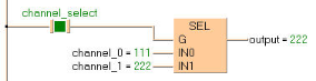 output := SEL(G := channel_select, IN0 := channel_0, IN1 := channel_1);LD |