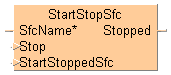 Cette fonction permet d’interrompre et de redémarrer un programme en diagramme de fonctions séquentielles (SFC) spécifique. Interrompre le programme signifie désactiver toutes les étapes et réinitialiser tous les drapeaux d’étapes, par ex. stepname.X.