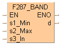 La fonction compare la valeur avec signe en entrée s3 avec la valeur limite inférieure, spécifiée en entrée s1 et la valeur limite supérieure, spécifiée par s2, d’une zone morte. Le résultat de la fonction est renvoyé en sortie d de la façon suivante :