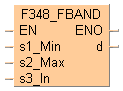 La fonction compare la valeur en entrée s3_In avec la valeur limite inférieure, spécifiée en entrée s1_Min et la valeur limite supérieure, spécifiée par s2_Max, d’une zone morte. Le résultat de la fonction est renvoyé en sortie d de la façon suivante :