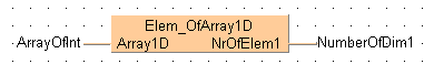 Le nombre total d’éléments de la variable d’entrée Array1D est généré en sortie NrOfElem1. Une variable array peut être transférée quelle que soit sa dimension. Dans tous les cas, le nombre total d’éléments de toutes les dimensions est renvoyé. Il est ainsi possible d’écrire des fonctions et blocs fonctions qui traitent des tableaux Arrays de différentes dimensions (également en combinaison avec les fonctions GetPointer, AreaOffs_ToVar, Var_ToAreaOffs).