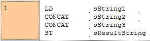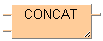 CONCAT connecte la deuxième chaîne de caractères d’entrée et les suivantes ((IN1 + IN2 + ...) à la première et écrit la chaîne de caractères résultante dans la variable de sortie.