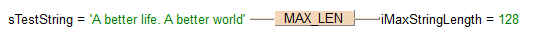 Cette instruction renvoie la longueur de la chaîne de caractères maximale définie dans la déclaration de variable de la variable d’entrée et écrit la valeur dans la variable de sortie.