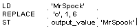 REPLACE remplace les caractères de la chaîne de caractères IN1 par les caractères de la chaîne de caractères IN2. P indique la position à partir de laquelle le remplacement commence et L indique le nombre de caractères qui doivent être remplacés. Le résultat est écrit dans la variable de sortie.