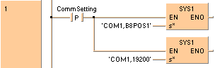 SYS1 Paramétrage de la communication pour les ports COM de la CPULes paramètres de communication du port COM ou du port Tool sont modifiés en entrant une chaîne de caractères comme constante.
