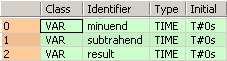 END_VARDans cet exemple, les variables d’entrée minuend et subtrahend ont été déclarées. Vous pouvez aussi entrer des constantes directement aux contacts d’entrée d’une fonction.