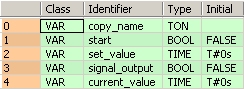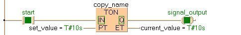 END_VARLorsque start est activé (état = TRUE), le signal d’entrée est transféré vers la sortie de signal signal_output avec un retard correspondant à la durée prédéfinie set_value.