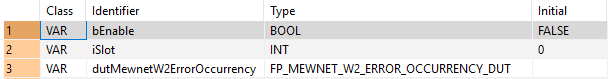 Toutes les variables d’entrée et de sortie utilisées pour programmer cette fonction ont été déclarées dans l’en-tête du POU.Le même en-tête de POU est utilisé pour tous les langages de programmation.