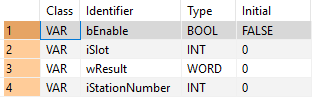 Toutes les variables d’entrée et de sortie utilisées pour programmer cette fonction ont été déclarées dans l’en-tête du POU.Le même en-tête de POU est utilisé pour tous les langages de programmation.