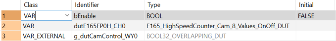 Le DUT F165_HighSpeedCounter_Cam_8_Values_OnOff_DUT est prédéfini dans la bibliothèque FP Library et peut être utilisé en tant que modèle.