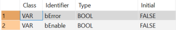 Toutes les variables d’entrée et de sortie utilisées pour programmer cette fonction ont été déclarées dans l’en-tête du POU. Le même en-tête de POU est utilisé pour tous les langages de programmation.