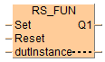Fonction définie par l’utilisateur, créée à partir d’un bloc fonction système converti. RS_FUN (reset/set) permet à la fois de réinitialiser et d’activer une sortie.