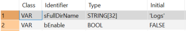END_VARLa fonction est exécutée lorsque la variable bEnable est définie sur TRUE. Elle supprime le dossier 'Logs' dans le répertoire racine de la carte mémoire SD ainsi que tous ses fichiers.