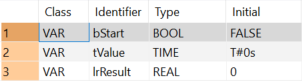 Toutes les variables d’entrée et de sortie utilisées pour programmer cette fonction ont été déclarées dans l’en-tête du POU. Le même en-tête de POU est utilisé pour tous les langages de programmation.