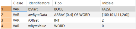 Tutte le variabili di ingresso e uscita utilizzate per programmare questa funzione sono state dichiarate nell'intestazione del POU. La stessa intestazione del POU è utilizzata per tutti i linguaggi di programmazione.