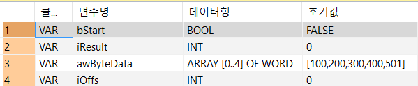이 펑션 프로그램 시 사용한 모든 입력과 출력 변수는 POU 헤더에서 선언되었습니다. 모든 프로그래밍 언어에 같은 POU 헤더를 사용합니다.
