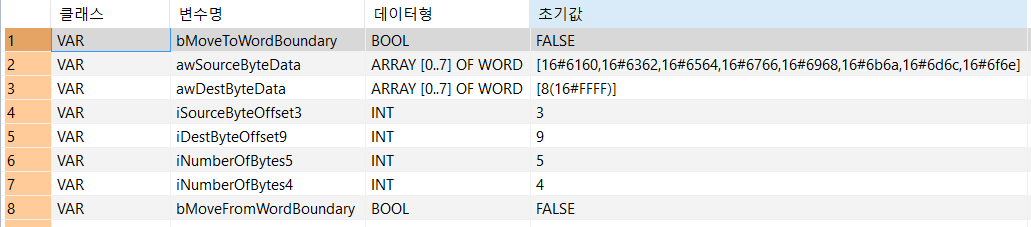 awDestByteData: ARRAY [0..7] OF WORD:=[8(16#FFFF)];