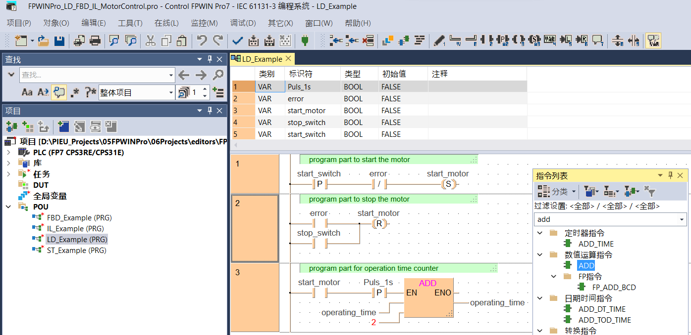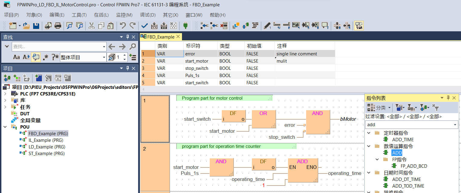 若要打开函数、功能块或运算符的在线帮助,请在POU本体中选择对象并按<F1>。