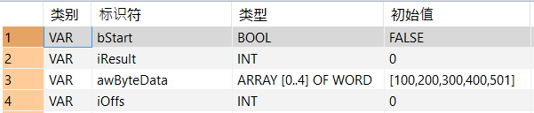 awByteData: ARRAY [0..4] OF WORD:=[100,200,300,400,501];