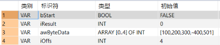 awByteData: ARRAY [0..4] OF INT:=[100,200,300,-400,501];